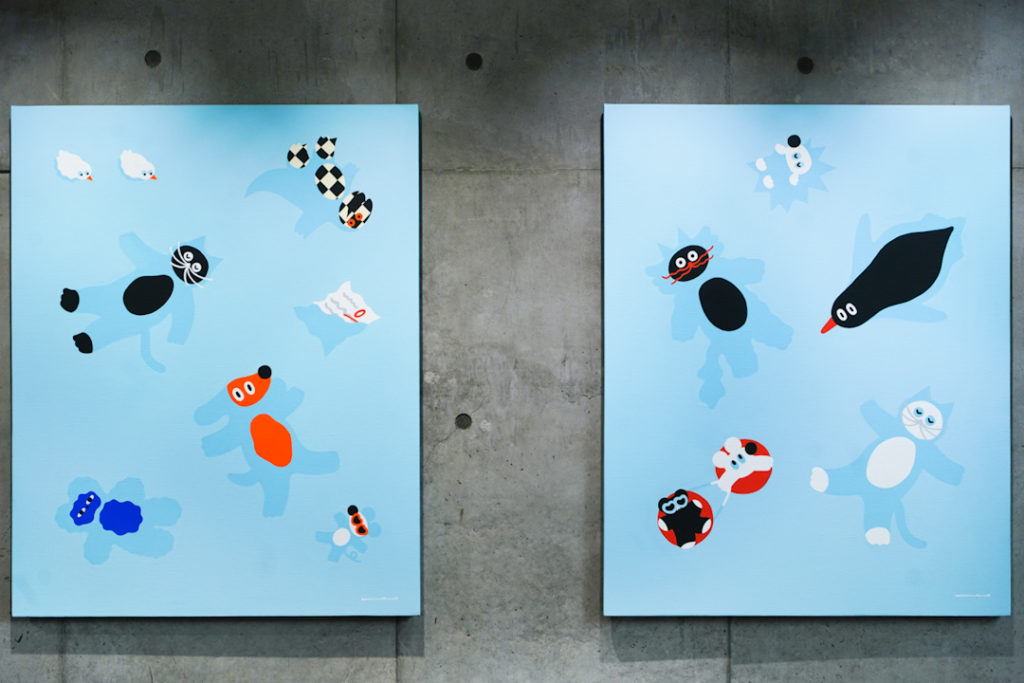個展などで積極的に作品発表も行う。動物と青色が好き。